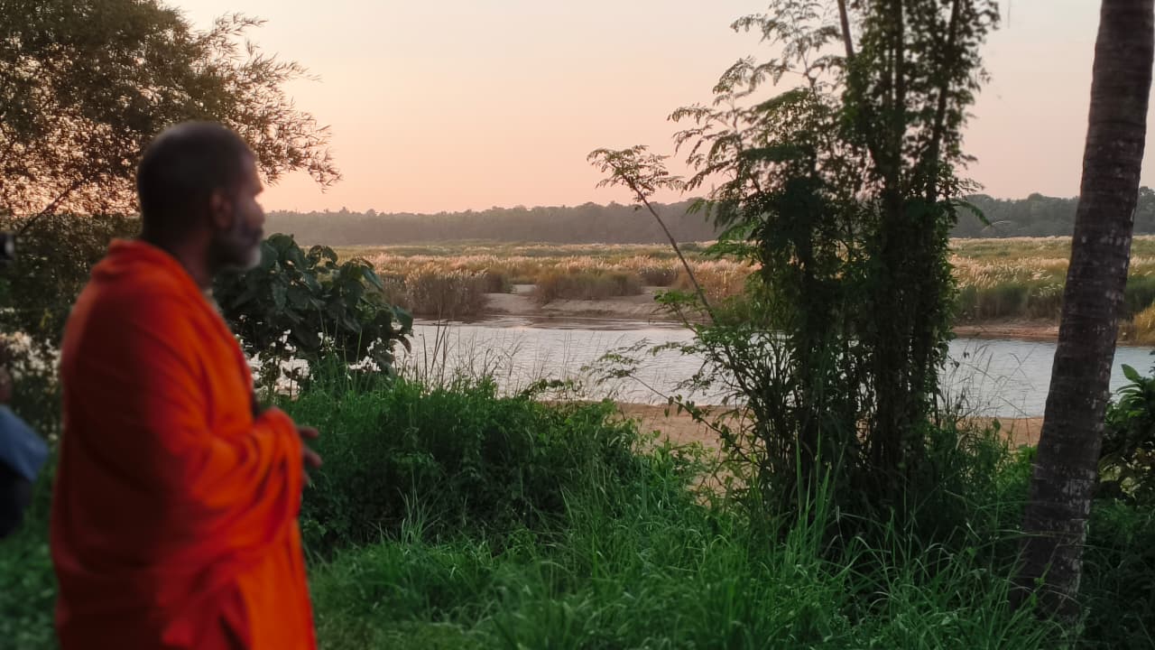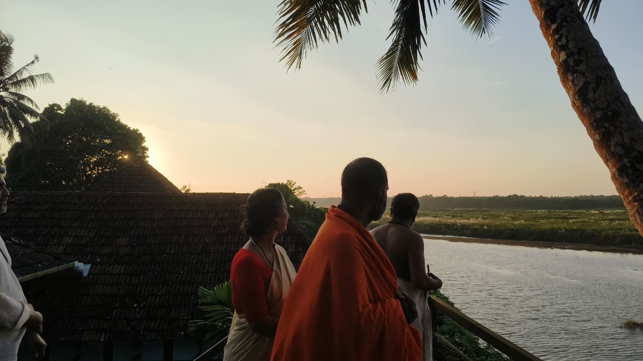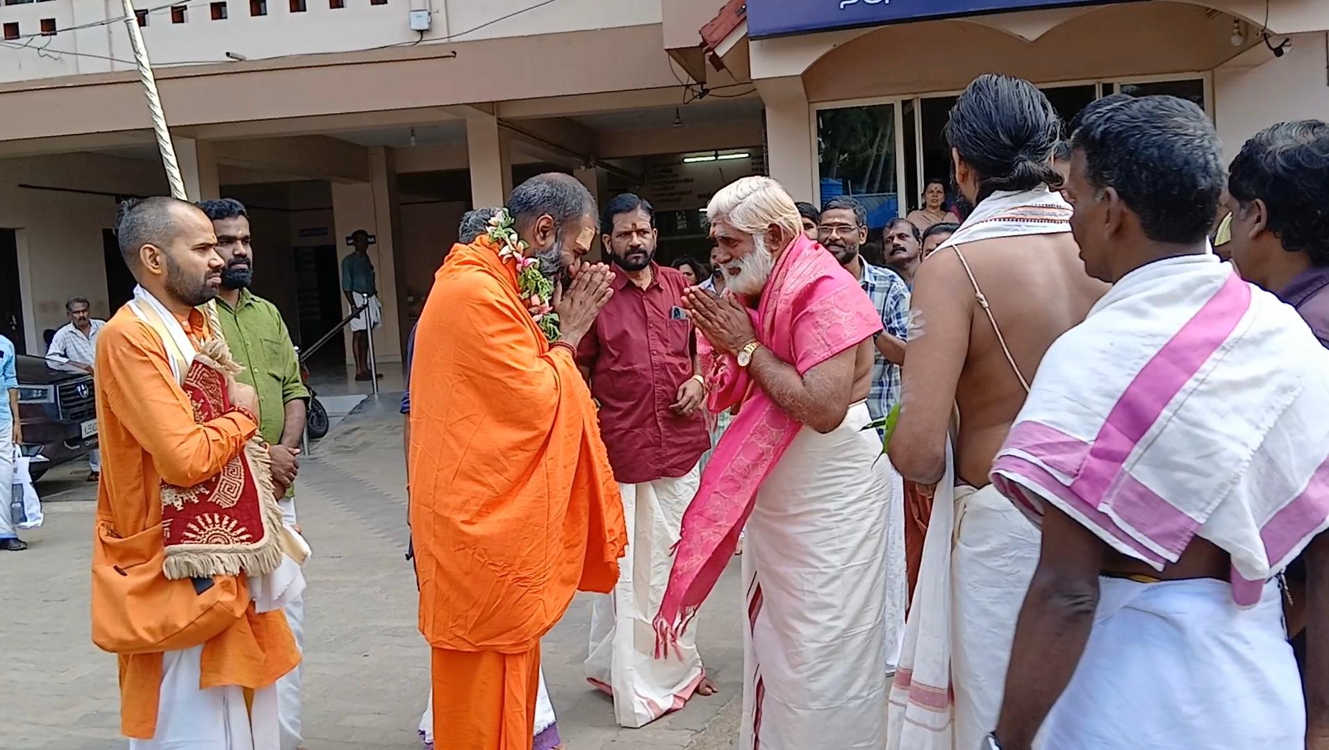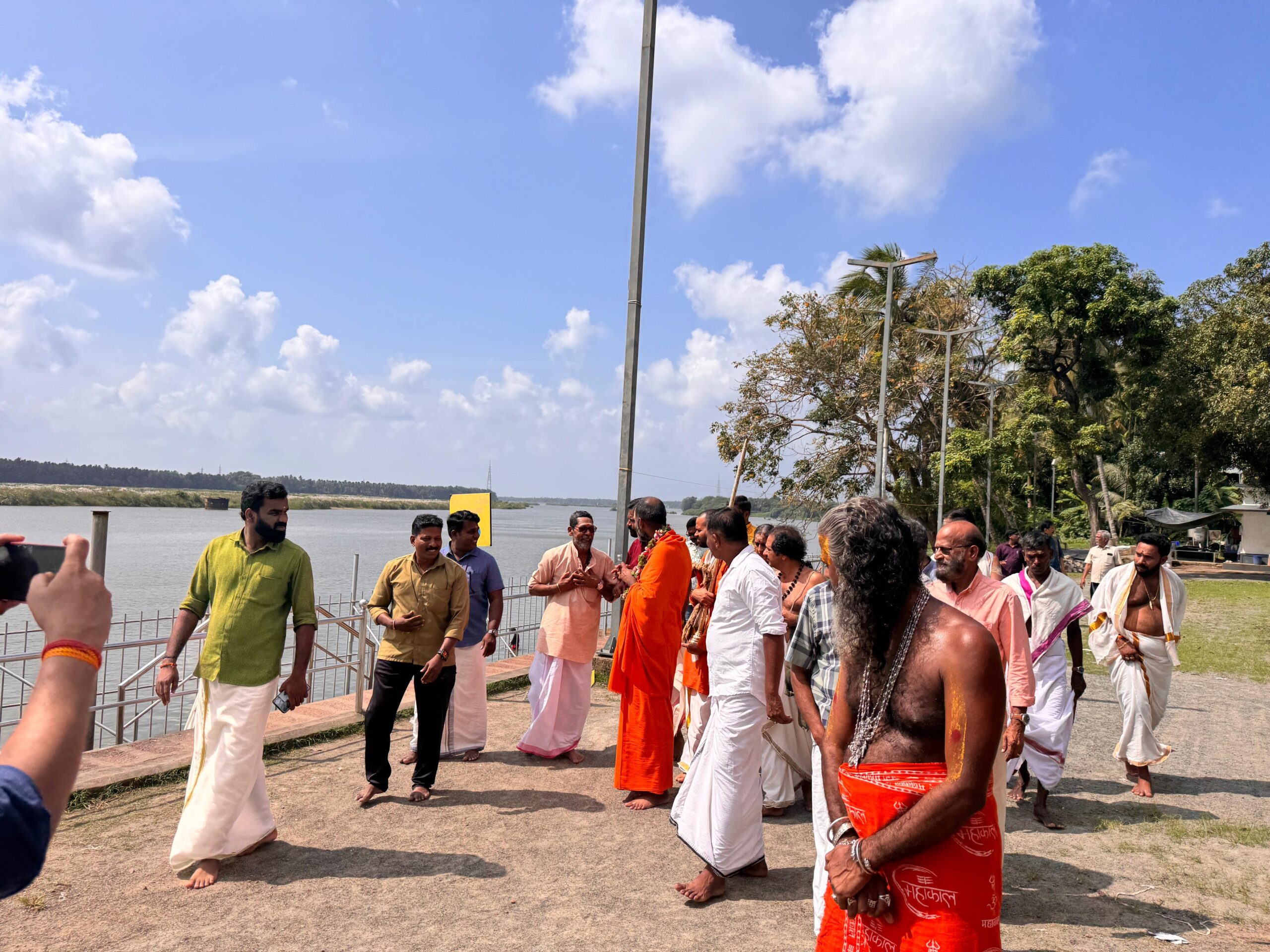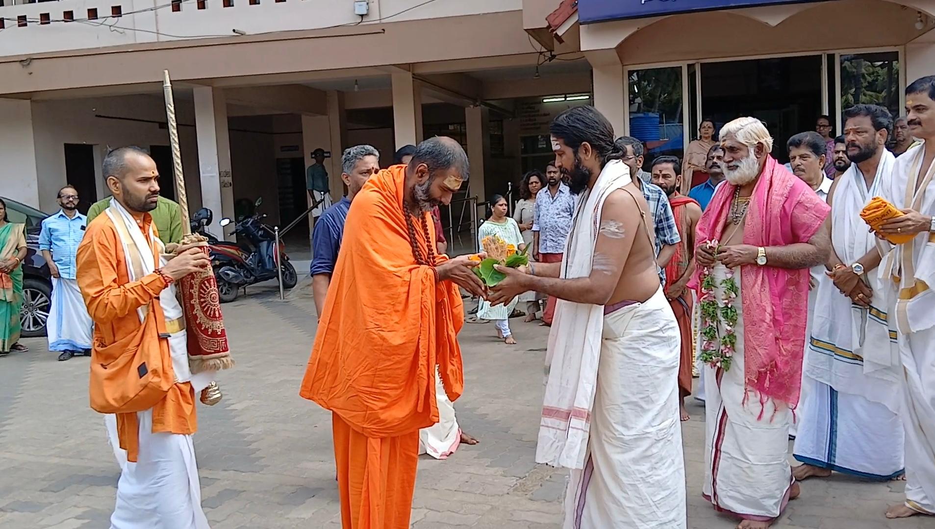 ധർമ്മ ജ്യോതി രഥയാത്രയോടനുബന്ധിച്ച് തിരുവഞ്ചിക്കുളം ക്ഷേത്രത്തിൽ ചേരമാൻ പെരുമാൾ നായനാരുടെ ഛായാചിത്രം മഹാമണ്ഡലേശ്വർ ആനന്ദവനം ഭാരതി മഹാരാജ് അനാഛാദനം ചെയ്യുന്നു.